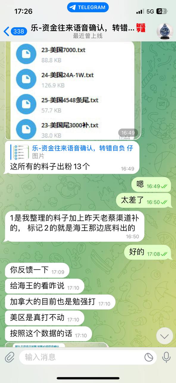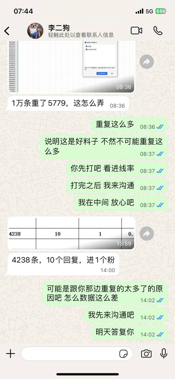 你好 你这5000条料子 我已经测试完了 总共进线10个 包括我这边电销团队激活
